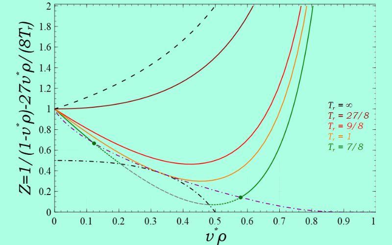 En cambio a presiones más bajas, las moléculas se mueven con mayor libertad y las fuerzas de repulsión disminuyen. Por lo tanto se espera un volumen menor. En cuanto a la temperatura, cuando esta aumenta, Z disminuye.