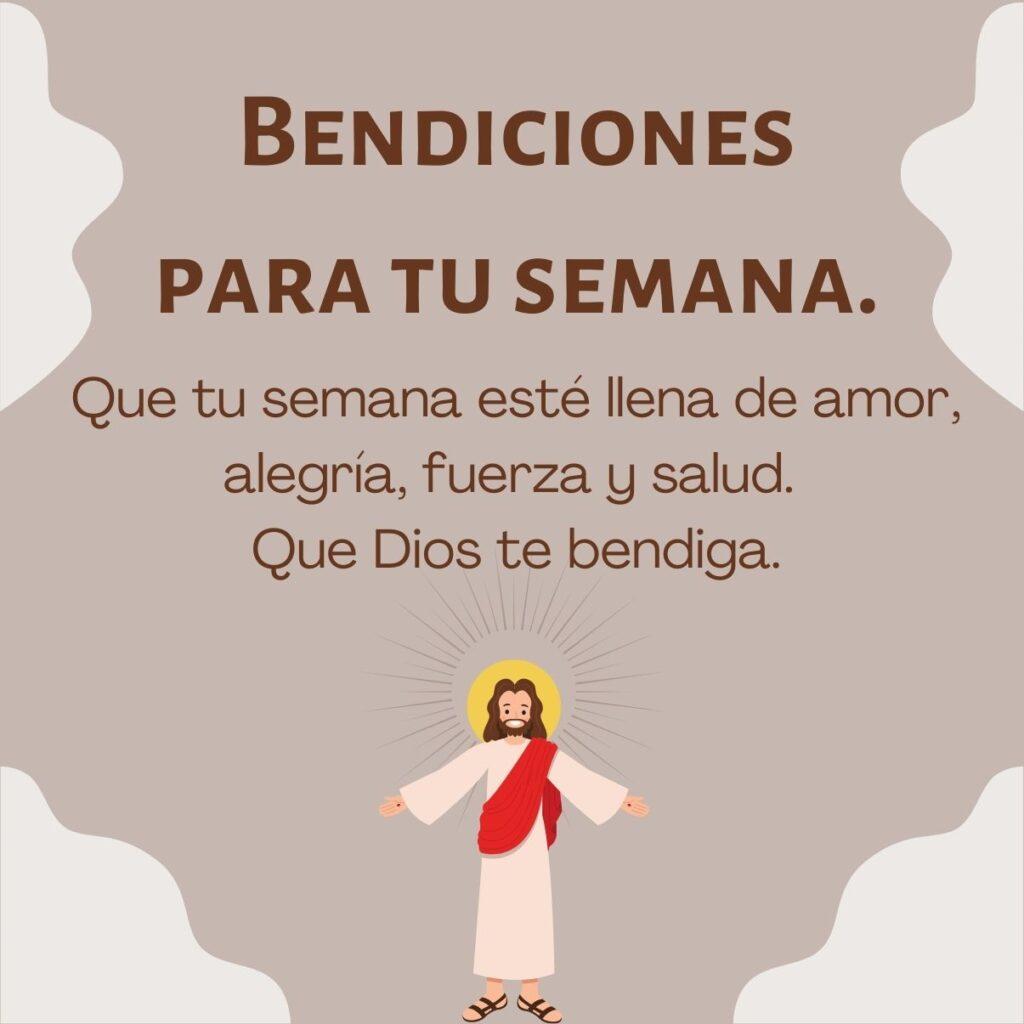 -Bendiciones para tu semana. Que tu semana esté llena de amor, alegría, fuerza y salud. Que Dios te bendiga.