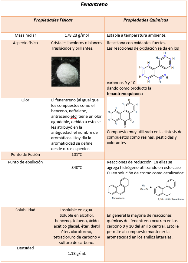 Propiedades físicas y químicas del fenantreno