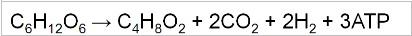 La fermentación de una molécula de glucosa por C. tyrobutyricum y C. butyricum se puede expresar como se muestra a continuación: