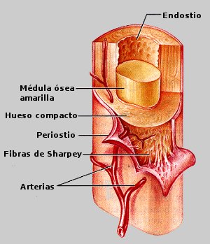 Los huesos cuentan con una superficie externa, cubierta por una lámina fibrosa denominada periostio. Esta membrana es rica en vasos sanguíneos y terminaciones neurológicas; aporta buena parte de la vascularización externa del hueso.