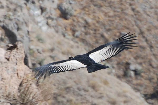 El cóndor andino es el ave no marina de mayor envergadura que existe, alcanzando los 3,30 m de longitud entre alas abiertas. Es un ave carroñera de color negro con los extremos de las alas blanco grisáceos, la cabeza desnuda rojiza.
