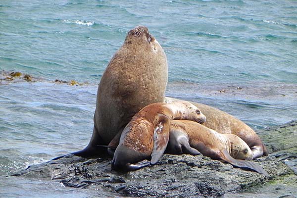 También se le denomina león marino, dado el pelaje castaño claro y abundante que rodea el cuello de los machos. Los machos de estos mamíferos marinos alcanzan los 800 Kg de peso y lideran grupos de 15 hembras y algunos machos jóvenes.