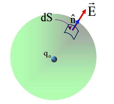 El campo producido por la carga qo no es uniforme, pero a partir de la ley de Coulomb se sabe que en la superficie de la esfera, tiene una magnitud de:
