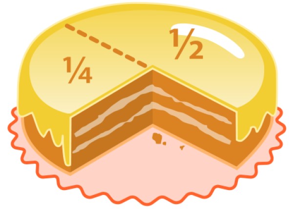 Figura 3.- Tanto 1/4 como 1/2 son fracciones propias. Fuente: Wikimedia Commons.