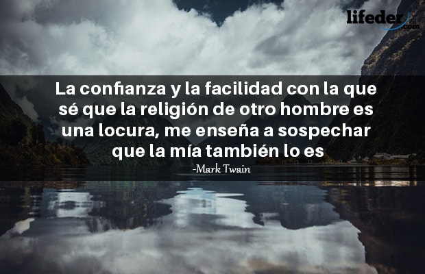 -La confianza y la facilidad con la que sé que la religión de otro hombre es una locura, me enseña a sospechar que la mía también lo es. -Mark Twain.