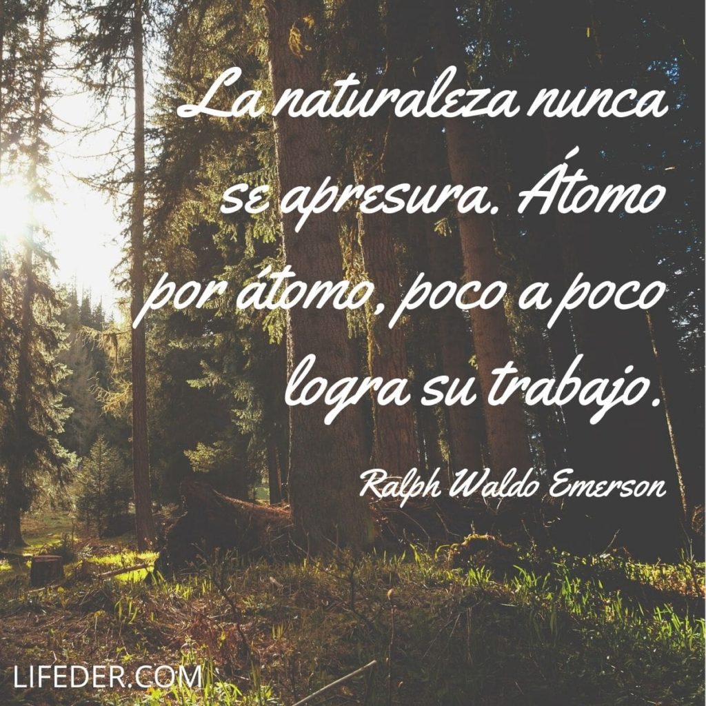 -La naturaleza nunca se apresura. Átomo por átomo, poco a poco logra su trabajo.-Ralph Waldo Emerson.