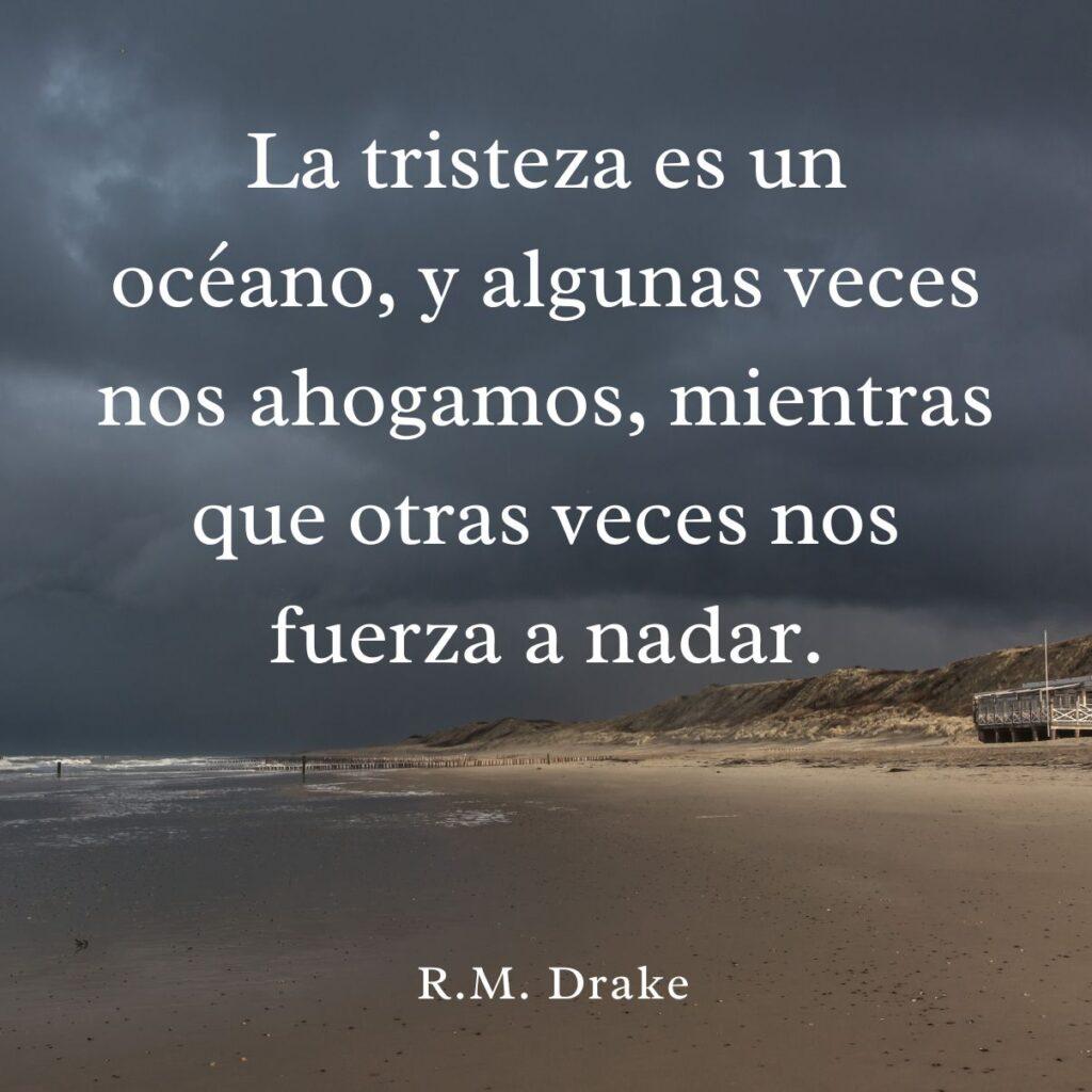 -La tristeza es un océano, y algunas veces nos ahogamos, mientras que otras veces nos fuerza a nadar.– R.M. Drake.