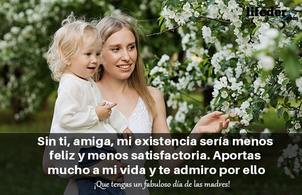 -Sin ti, amiga, mi existencia sería menos feliz y menos satisfactoria. Aportas mucho a mi vida y te admiro por ello. ¡Que tengas un fabuloso día de las madres!