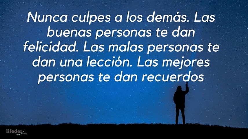 -Nunca culpes a los demás. Las buenas personas te dan felicidad. Las malas personas te dan una lección. Las mejores personas te dan recuerdos.