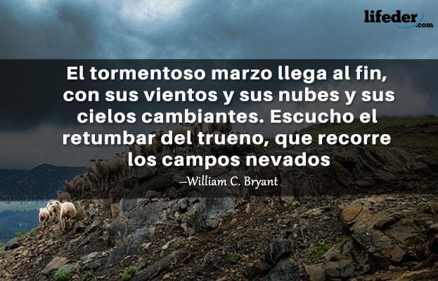 -El tormentoso marzo llega al fin, con sus vientos y sus nubes y sus cielos cambiantes. Escucho el retumbar del trueno, que recorre los campos nevados. –William C. Bryant.
