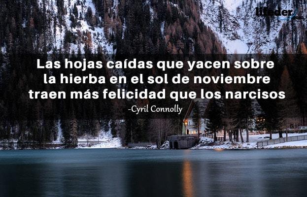 -Las hojas caídas que yacen sobre la hierba en el sol de noviembre traen más felicidad que los narcisos. -Cyril Connolly.