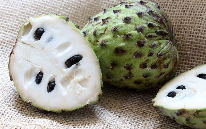 La guanábana es una fruta que se produce primordialmente en áreas tropicales y es bastante popular en Sudamérica. Su textura es blanda y cremosa, teniendo un sabor deliciosamente dulce. Hay que comerla en su punto de madurez, pues podría resultar un poco astringente.