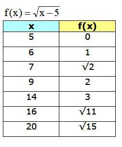Primero hay que determinar el dominio de la función, para saber qué valores de x se pueden escoger para construir la tabla. En el caso de la función propuesta, la cantidad dentro de la raíz debe ser siempre positiva o igual a 0, por lo tanto: