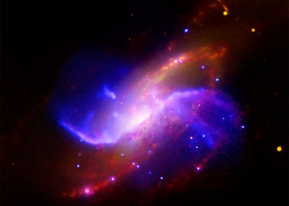 Las galaxias pueden aumentar su tamaño fusionándose con otras más pequeñas. Se cree que esto sucede en la actualidad con la Vía Láctea y sus vecinas más pequeñas, las Nubes de Magallanes.