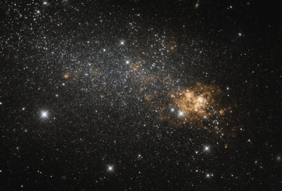 - Galaxias irregulares. Se trata de galaxias cuya forma no encaja con ninguno de los patrones antes descritos. El mismo Hubble las dividió en dos grupos: Irr I e Irr II, donde las primeras están apenas un poco más organizadas que las segundas, porque tienen algo que recuerda la forma de los brazos espirales. Las galaxias Irr II son, podríamos decir, amorfas y sin estructura interna reconocible. Tanto Irr I como Irr II suelen ser más pequeñas que las galaxias elípticas o las majestuosas galaxias en espiral. Algunos autores prefieren llamarlas galaxias enanas. Entre las más conocidas galaxias irregulares están las vecinas Nubes de Magallanes, clasificadas como Irr I.