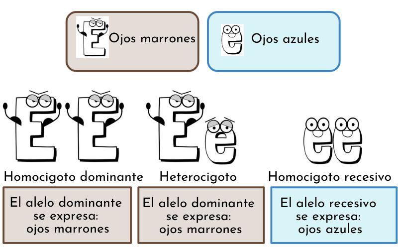 - Dominancia y recesividad. Algunos alelos pueden ser dominantes y expresarse en el fenotipo, incluso si solo uno de los alelos es dominante. Los alelos recesivos solo se expresan cuando ambos alelos son recesivos.
