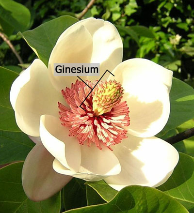 En el caso de las angiospermas, el gineceo está constituido por un grupo de hojas carpelares que se fusionan en forma de cavidad. Esta estructura, denominada ovario, contiene los primordios seminales donde se desarrollan los óvulos.