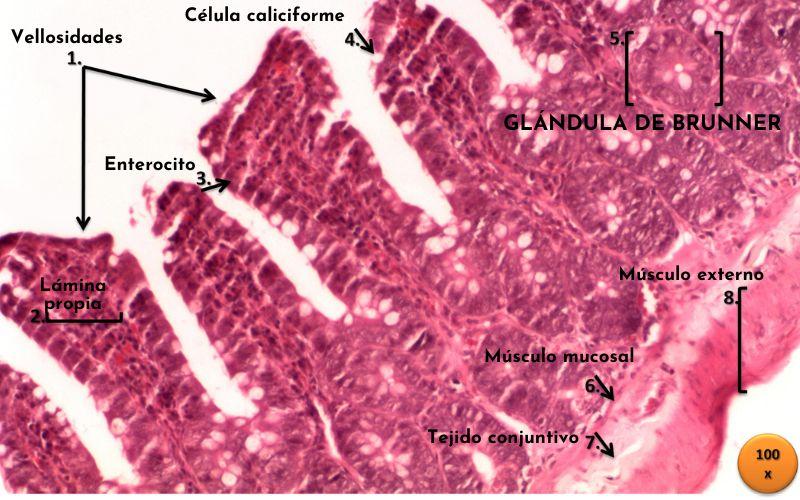 Histología de las glándulas de Brunner