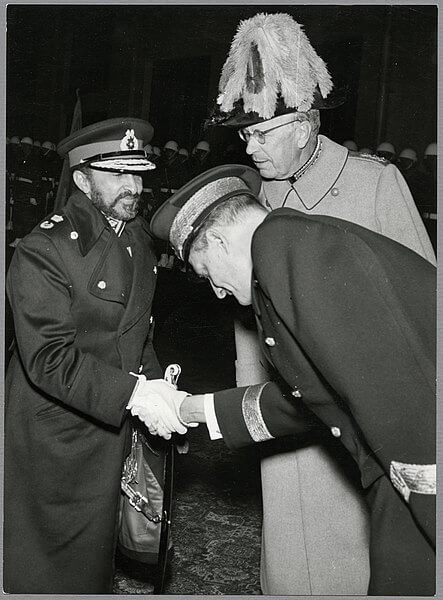 El rey Gustavo VI Adolfo de Suecia y el emperador Haile Selassie de Etiopía en 1954. Fuente: Unknown photographer / Swedish Railway Museum, CC0, via Wikimedia Commons