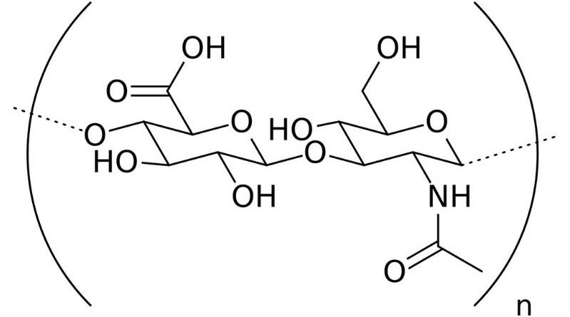 • Ácido hialurónico. Este es uno de los fármacos más empleados en la industria de la estética como lubricante debido a sus propiedades viscosas, elásticas y reológicas. Se emplea como lubricante ocular, amortiguador en las articulaciones y para retrasar los procesos de envejecimiento, puesto que disminuye la actividad de las células en el ciclo celular. Es un polímero perteneciente al grupo de los glucosaminoglucanos y está compuesto por ácido-D-glucurónico y N-acetil-D-glucosamina, unidos entre sí por un enlace β-1,3. Se encuentra en casi todas las células de procariotas y eucariotas, especialmente en los tejidos conectivos y la piel de los animales.