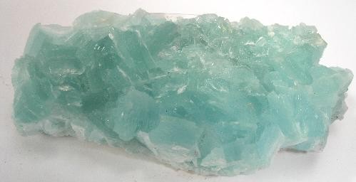 Físicamente, sus cristales parecen vidrios fundidos (imagen superior), con colores blancos, grisáceos, azulados o verdosos, y transparentes en raros ejemplares.