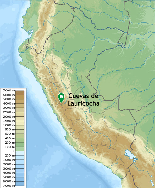 El hallazgo se localizó en las cuevas de Lauricocha, ubicadas en la localidad de Huánuco, en Perú. Se encuentran cerca del nacimiento del río Marañón, a una altura de 3900 metros sobre el nivel del mar. Las coordenadas coinciden con 10°06′S 76°36′O.