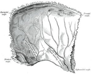 Hueso parietal. Fuente: De Henry Vandyke Carter – Henry Gray (1918) Anatomy of the Human Body (See “Libro” section below)Bartleby.com: Gray’s Anatomy, Plate 133, Wikimedia Commons