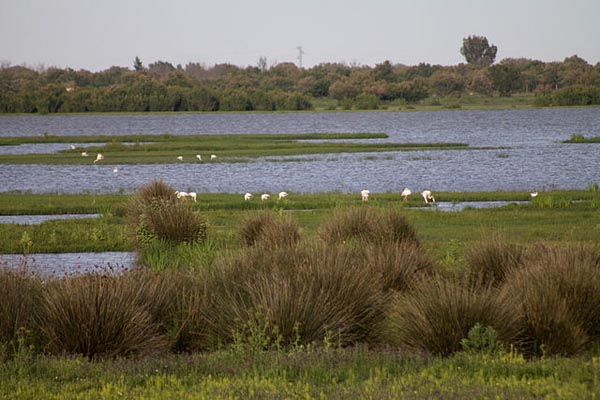 - Parque Nacional y Natural de Doñana (España). Ubicado al suroeste de la península ibérica, en la comunidad autónoma de Andalucía. Este parque protege una zona que forma parte de las marismas del río Guadalquivir. Es una antigua ensenada litoral colmatada por depósitos marinos y fluviales que se extiende por 122.487 hectáreas. Constituye una reserva importante de aves acuáticas, sobre todo migratorias, debido a su ubicación mediterránea y cercanía con África. En el parque se pueden presentar unas 300 especies de aves, como el alcaraván (Burhinus oedicnemus) y tarro canelo (Tadorna ferruginea). También habita el lince ibérico (Lynx lynx), el jabalí (Sus scrofa) y el erizo europeo (Erinaceus europaeus). Entre las plantas, hay gramíneas como Vulpia fontquerana y gimnospermas, como Juniperus macrocarpa (enebro marítimo).