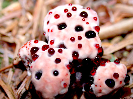 El hongo Hydnellum peckii establece relaciones ectomicorrizas con coníferas. Son relaciones de tipo mutualista, lo que significa que las dos especies involucradas salen beneficiadas.