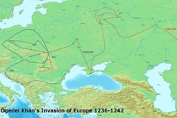 Los mongoles también alcanzaron Europa. En el 1241, derrotaron a los alemanes y a los polacos en la batalla de Liegnitz, así como a los húngaros en Mohi. Sin embargo, cuando parecía que podían continuar su expansión por el resto del continente, decidieron regresar a Mongolia para elegir un nuevo Gran Kan.
