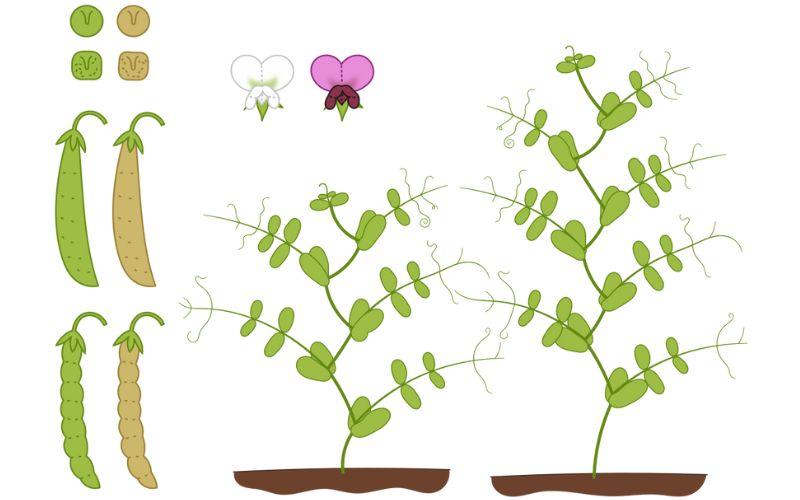 Sus trabajos consistieron en cruzar variedades de plantas de guisantes, tomando en consideración rasgos determinados, como color y ubicación de las flores de la planta, forma y color de las vainas de los guisantes, forma y color de las semillas y longitud del tallo.
