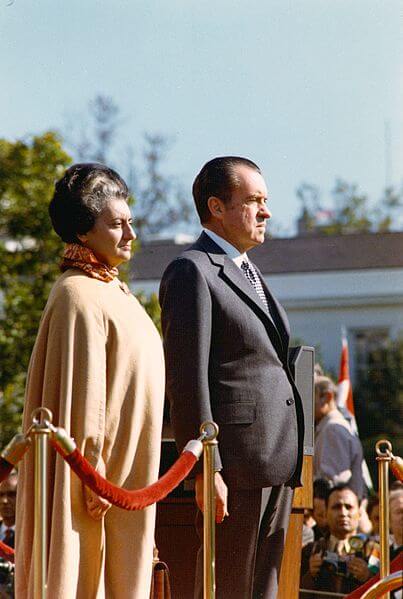 Indira Gandhi (1917 – 1984) fue una política y la primera mujer en ocupar el cargo de primera ministra de la India. Era hija del también político Jawaharlal Nehru, que estuvo al frente del Gobierno indio entre 1947 y 1964 tras la independencia del Imperio británico.