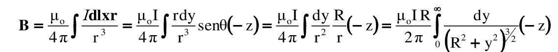 Finalmente, para encontrar el campo magnético total de dicha distribución de corriente, se suman todas las contribuciones de cada segmento diferencial dl. Esto equivale a integrar sobre toda la distribución: