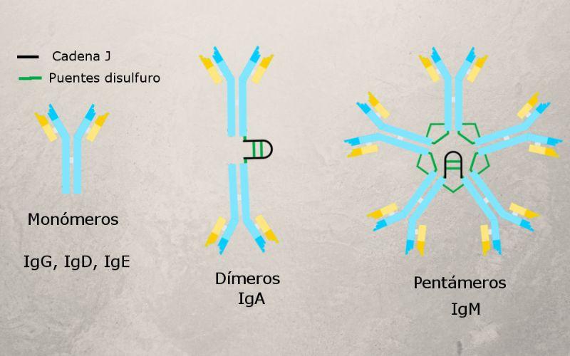 Ya que cada monómero tiene la capacidad de unirse a dos moléculas antigénicas idénticas, un pentámero de IgM puede unirse a 10 antígenos simultáneamente.
