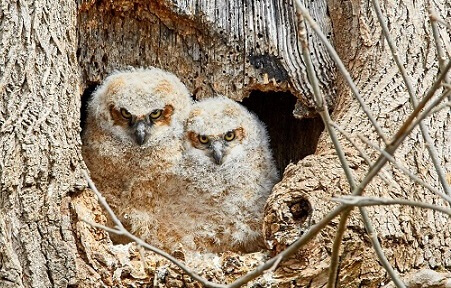Polluelos de búhos habitando en árbol