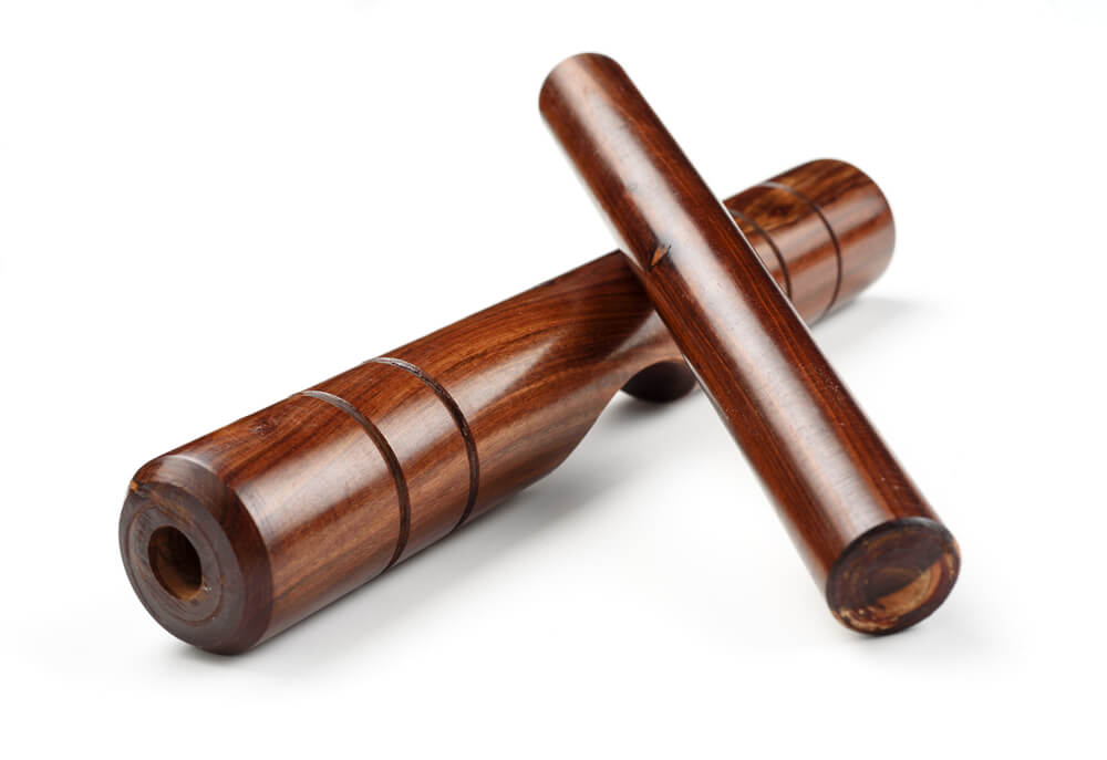 En plural, porque vienen en un par, son dos barras de madera de unos 25 cm que generan un sonido agudo al golpearlas entre sí.