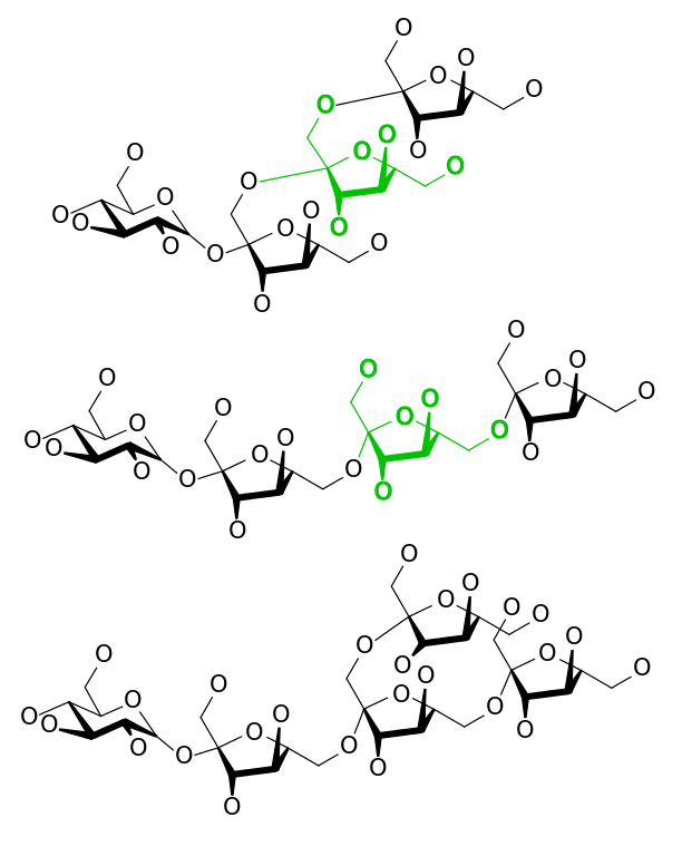 Esto se debe a que los enlaces que unen las unidades de fructosa en estos polímeros carbohidratados no pueden ser hidrolizados por las enzimas estomacales o intestinales, por lo que estos compuestos se consideran “probióticos”, ya que alimentan directamente a la flora intestinal.