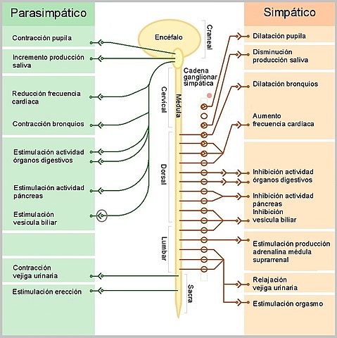 La porción eferente o motora del sistema nervioso autónomo está organizada en dos componentes: el simpático y el parasimpático, sistemas constituidos por vías que conectan neuronas en el sistema nervioso central con células efectoras viscerales del organismo sobre las cuales ejercen efectos antagónicos.