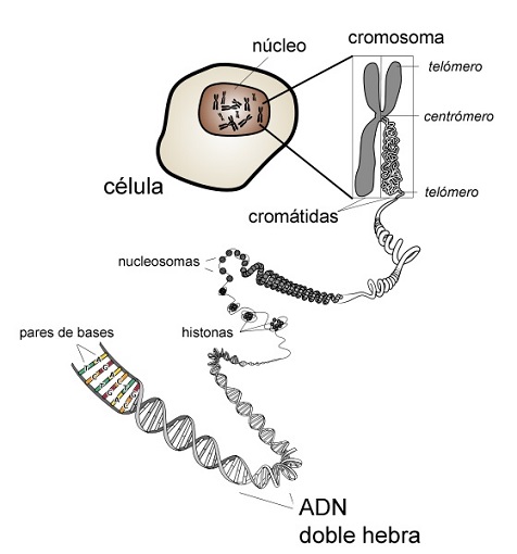 En todas las células vivas, el ADN está empaquetado en estructuras altamente organizadas, denominadas cromosomas. Este empaquetamiento en células eucariotas tiene lugar gracias a la interacción del ADN con unas proteínas llamadas histonas, que en grupo de ocho unidades (octámero) forman un nucleosoma.