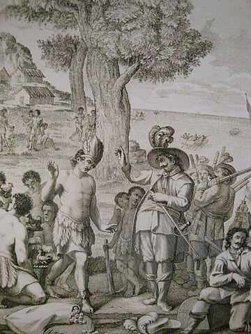 Según el cronista Bernal Díaz del Castillo, el encuentro durante el que los indígenas comunicaron a los españoles la existencia del Imperio azteca se desarrolló de la siguiente manera: