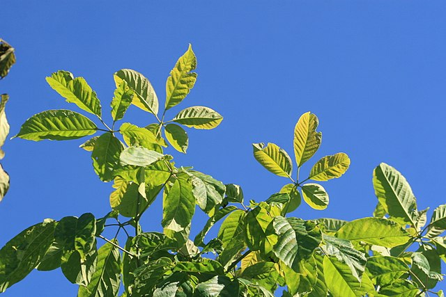 Mide más de 30 m, con el tronco recto profusamente ramificado, de corteza fisurada y color castaño-grisáceo. Su follaje, dispuesto de manera irregular, está constituido por hojas con cinco folíolos ligeramente aterciopelados, y su copa es ovalada.