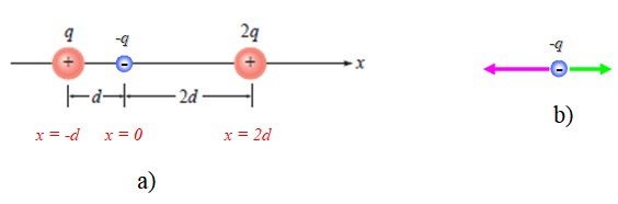 Llamemos F1 a la fuerza que ejerce la carga q sobre la carga –q, están dirigida a lo largo del eje x y apunta en el sentido negativo, por lo tanto: