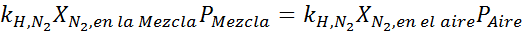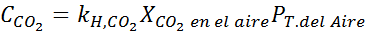 Donde C se refiere a la concentración máxima del gas en el líquido, es decir, su solubilidad; Pgas es la presión parcial del gas en contacto con el líquido y kH es una constante de proporcionalidad denominada constante de la Ley de Henry.