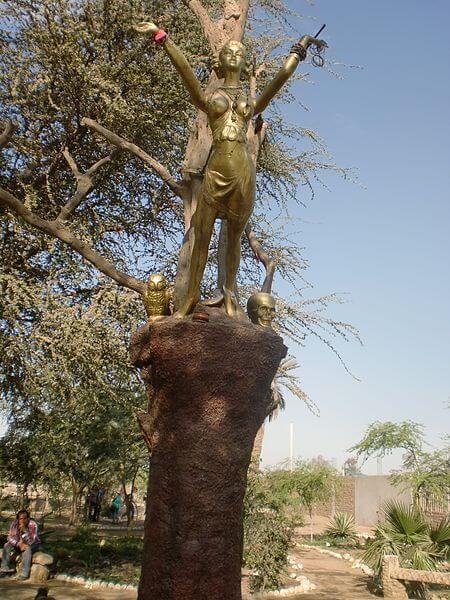 En la laguna seca se encuentra una palmera de siete cabezas. Según la bruja, el pueblo se hundiría cuando reverdeciera la séptima cabeza.