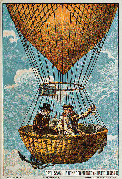 Un año después de presentar su trabajo sobre los gases, Gay-Lussac realizó experimentos a bordo de un globo aerostático. En sus dos ascensos superó los 3800 metros de altitud, circunstancia que le permitió confirmar que la composición química de la atmósfera y el campo magnético permanecen constantes si se sobrepasa una altura determinada.