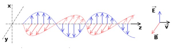 La luz se propaga como una onda electromagnética. Tanto el campo eléctrico como el magnético se generan el uno al otro, constituyendo ondas acopladas que están en fase y son perpendiculares entre sí y a la dirección de propagación.