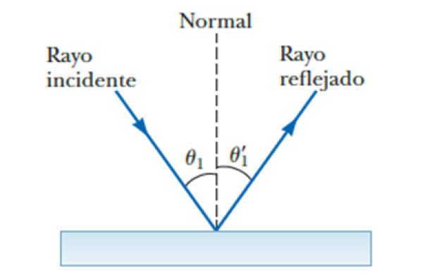 Tanto el rayo incidente como el reflejado y la normal a la superficie especular se encuentran en un mismo plano. Los antiguos griegos ya habían observado que el ángulo de incidencia es igual al ángulo de reflexión: