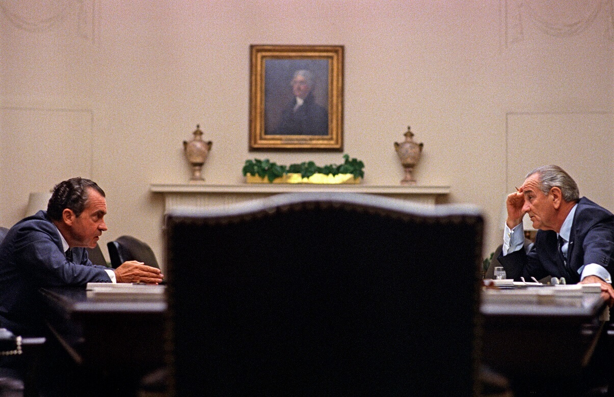Lyndon Johnson reunido con el candidato presidencial Richard Nixon, 1968