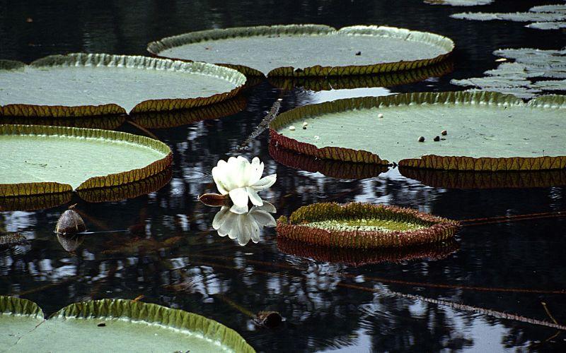 De la gran variedad de macrófitas acuáticas, destacan la lechuga de agua (Pistia stratiotes), el jacinto de agua (Eichhornia crassipes), la victoria regia (Victoria amazonica) y la salvinia (Salvinia Spp.). Asimismo, la redondita de agua (Hydrocotyle ranunculoides), y ciertas especies de lentejas de agua (Spirodella Spp. y Lemna Spp.).